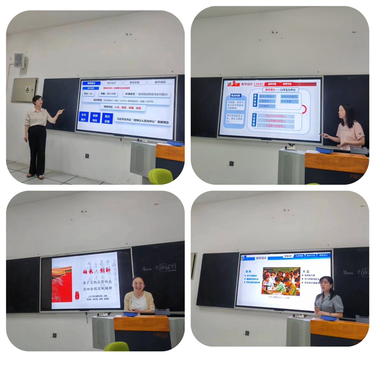 竞赛分为选手展示、评委点评两个环节。在选手展示环节,4位参赛教师各展所长,结合课程特点巧妙运用案例,将思政元素融入到专业课程内容中,分别完成了10分钟的说课和5分钟的课堂教学展示。随后,评委们从思政设计理念、内容选择、效果展示等方面作了全方位点评,并充分认可了参赛教师的整体教学水平。同时,针对不足之处,评委们从教学设计、用词的准确性、授课重点以及思政元素的融入等方面对授课教师提出了建设性的意见。