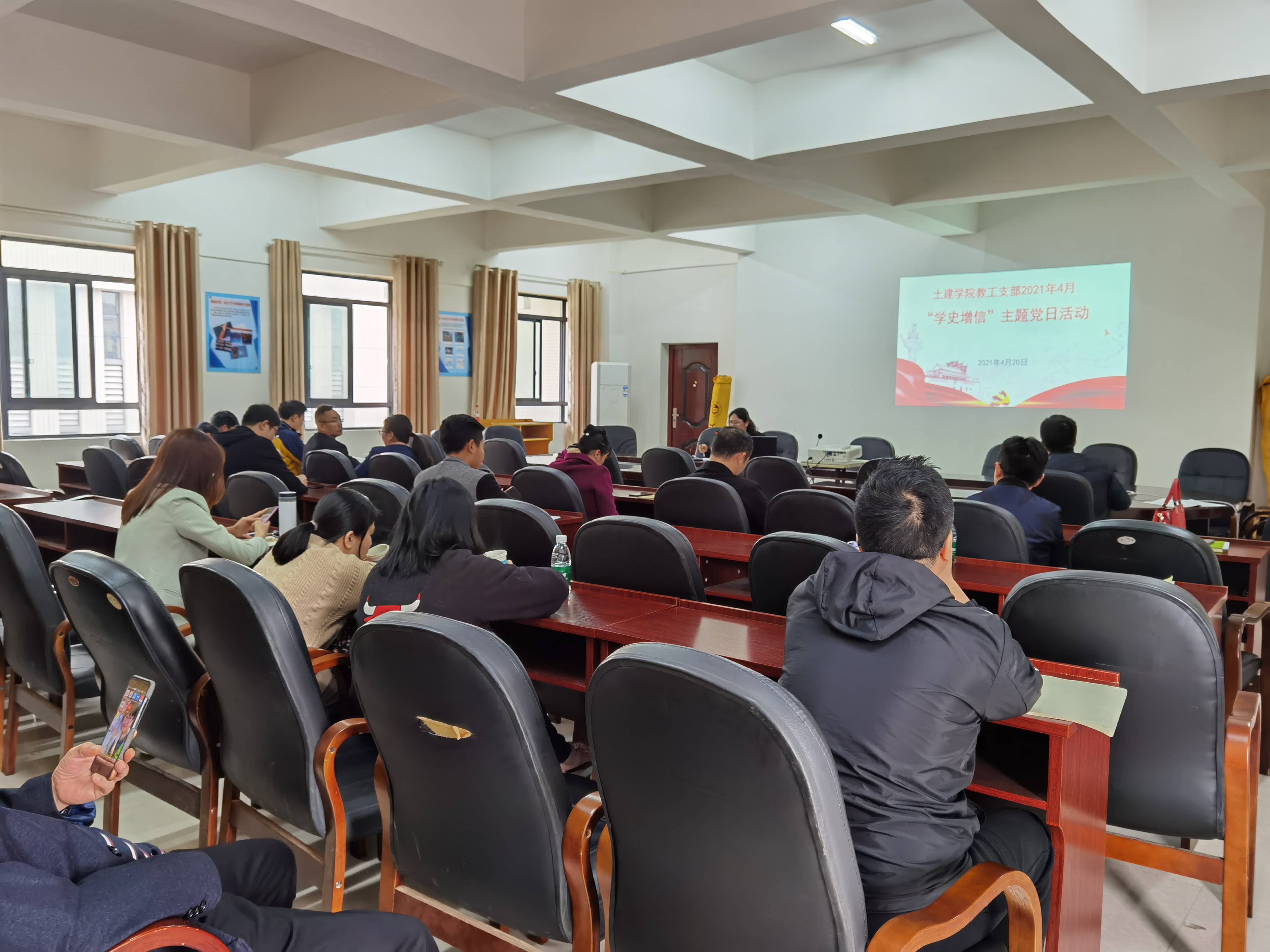 土建公司教师党支部于4月20日下午,在公司会议室开展了“学史增信“四月主题党日活动。支部书记彭艳同志主持,公司教工支部党员参加了学习。本次活动围绕“学史增信”主题,观看了视频资料《百炼成钢--中国共产党100年》