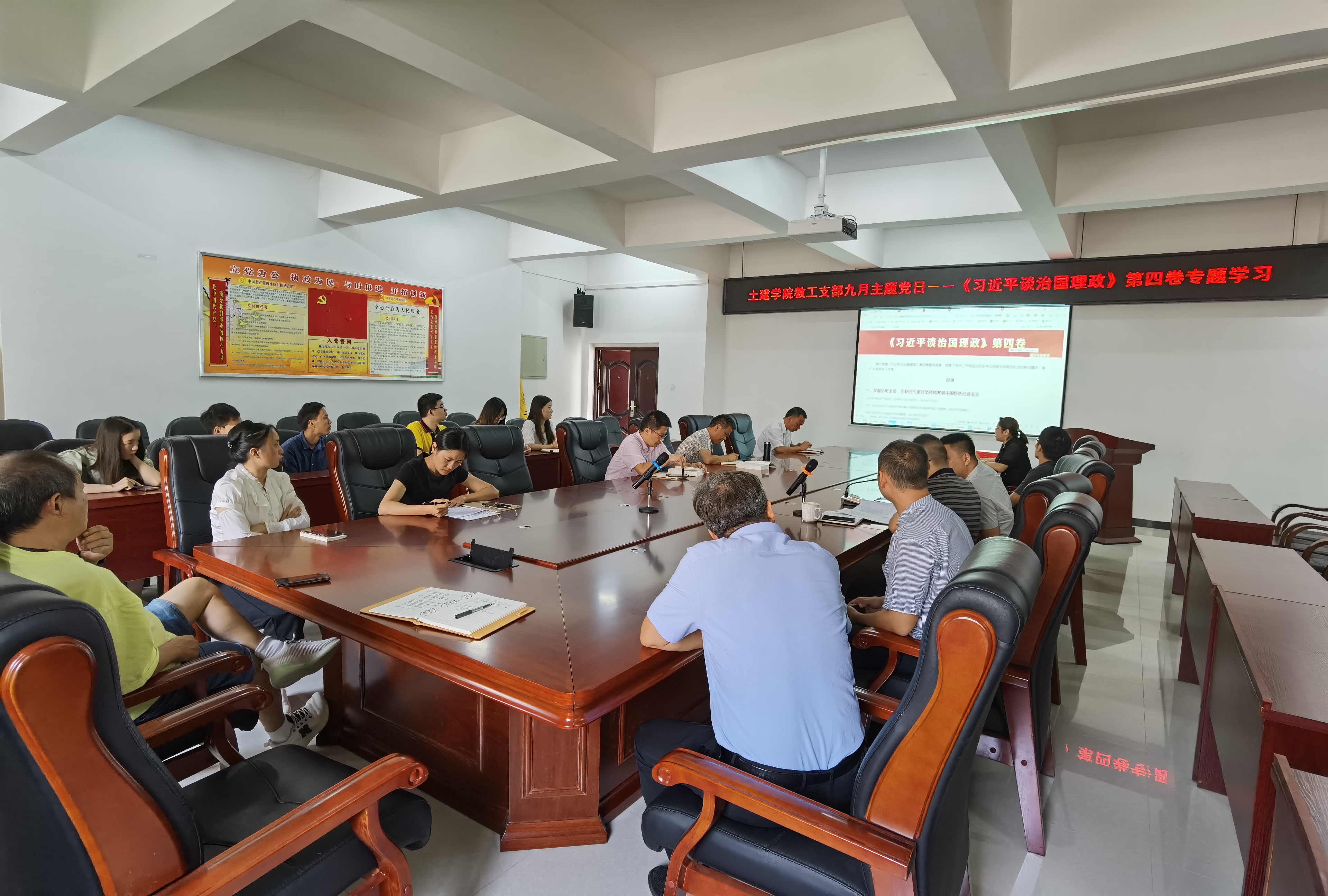 2022年9月16日,土木工程与建筑公司教工党支部九月主题党日活动如期举行。活动以观看视频、学习原著和研讨的形式开展,重点学习了《习近平谈治国理政》(第四卷),简要学习了《让群众过上好日子-习近平正定足迹》等五部图书的部分内容。活动由教工党支部书记彭艳同志主持,公司党委书记向成绪、经理吴吉林等全体教工党员参加了活动。
