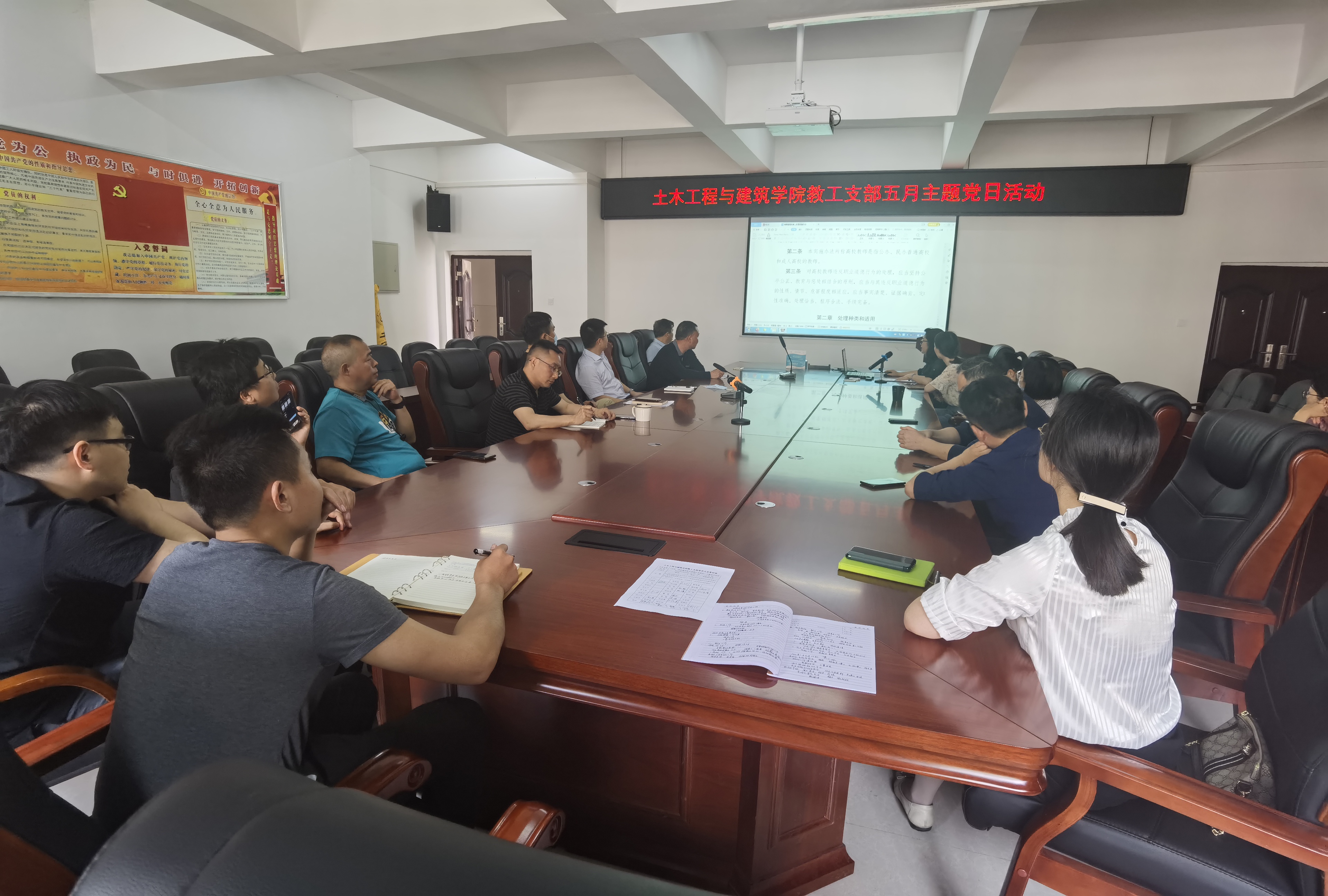 2022年5月24日,“土木工程与建筑公司教工党支部五月职业道德教育主题党日活动”在公司会议室进行。活动由教工党支部书记彭艳同志主持,公司党委书记王文广、经理吴吉林等全体教工党员参加了活动。