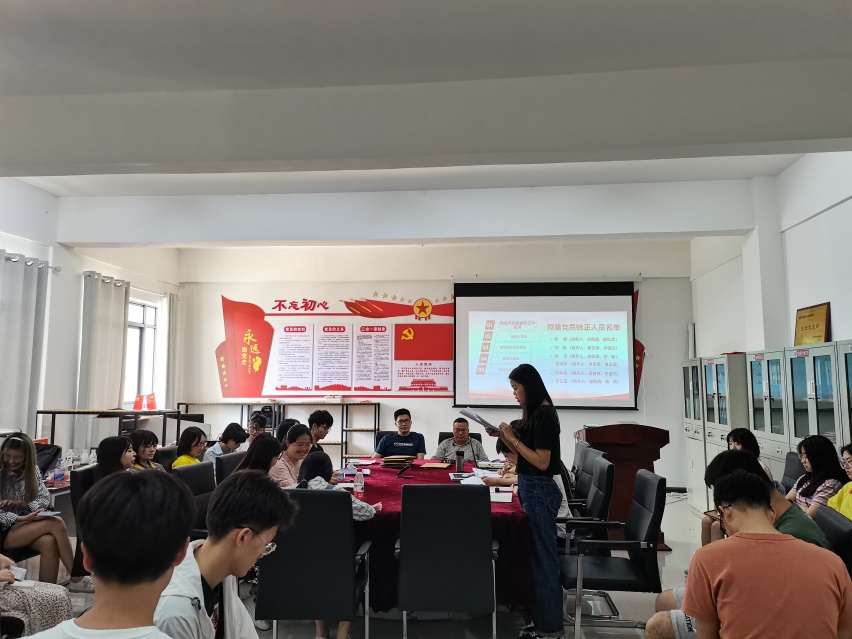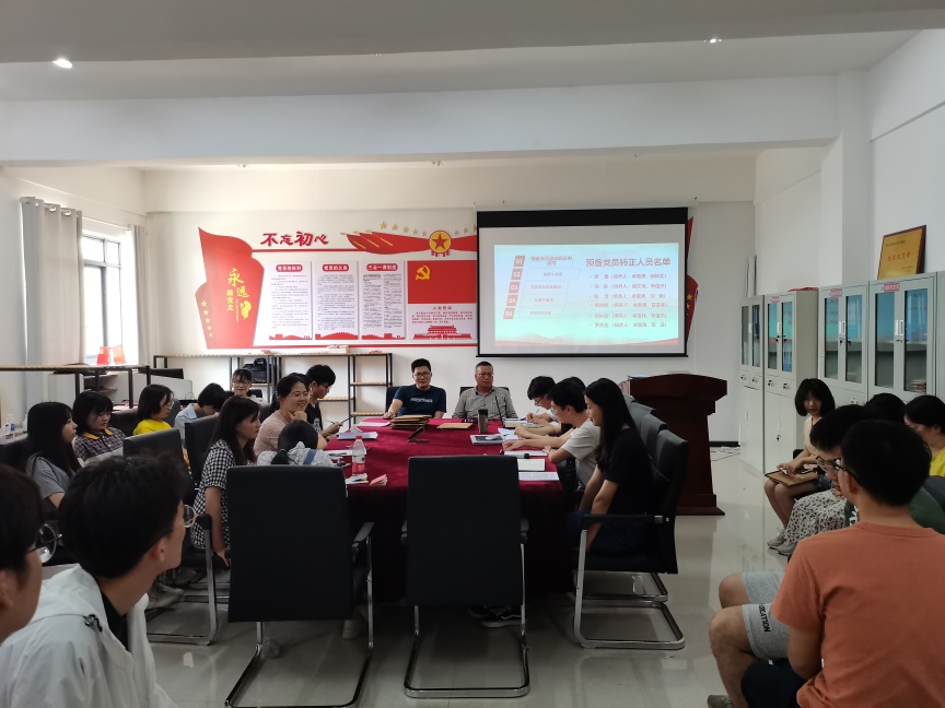 大会开始,由邓翼、郑颖等6名预备党员相继宣读转正申请书,汇报预备期中自己在思想,生活,工作等方面的情况。再由培养人介绍或在场党员代读相应预备党员的培养考察情况。会上,大家都真情地表达了对党的向往,对党的忠诚,表示将坚定不移跟党走,为党的工作付出自己的力量,为共产主义奋斗终身。接着,参会的党员对其了解的6名预备党员相继发表了自己的看法,表明态度,也指出了不足之处。