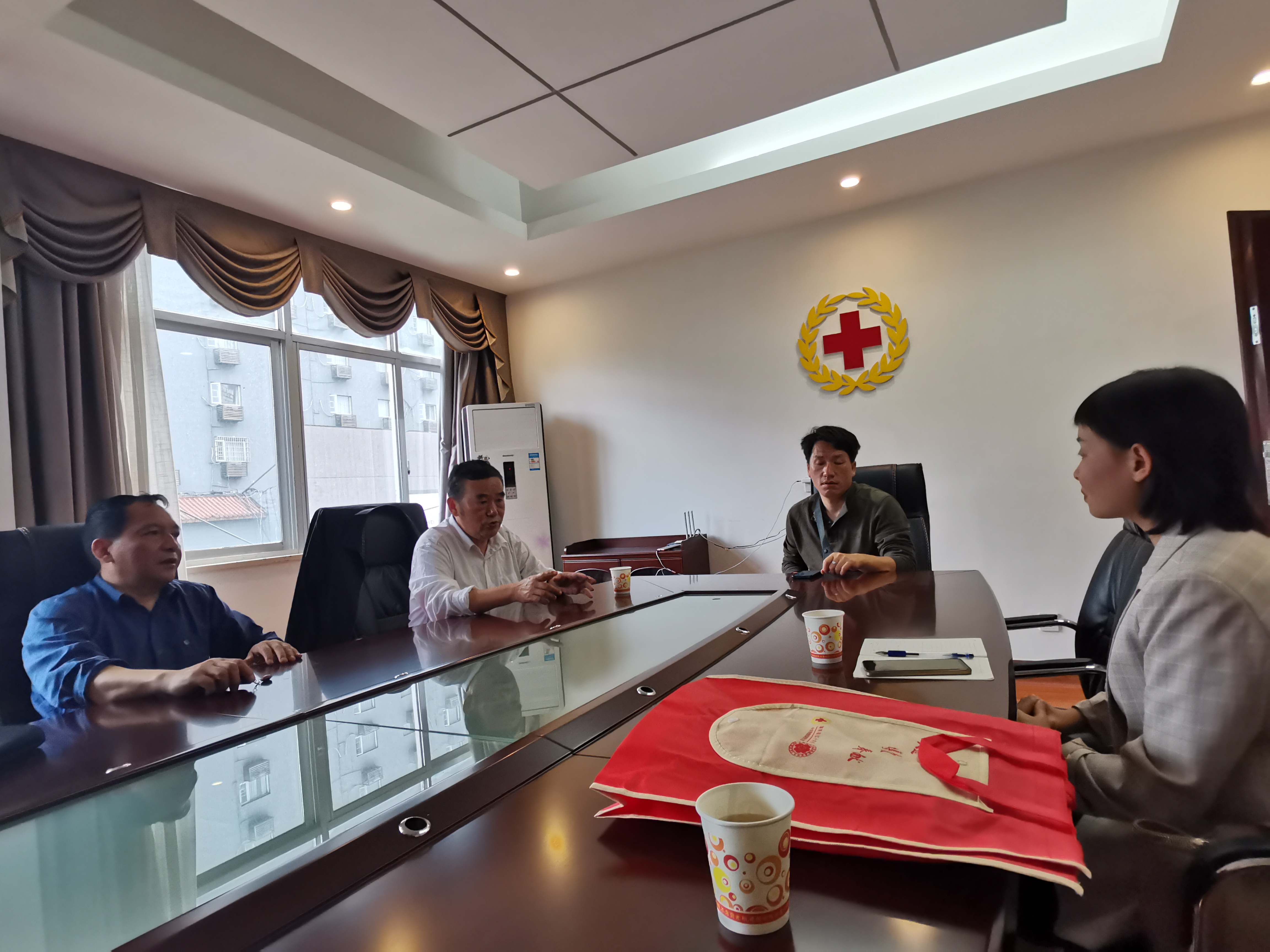 2021年5月24日,土木工程与建筑公司团委书记张洁,院青年志愿者协会理事长汪瑞在张家界红十字协会就救护员培训进高校相关事宜进行探讨。
