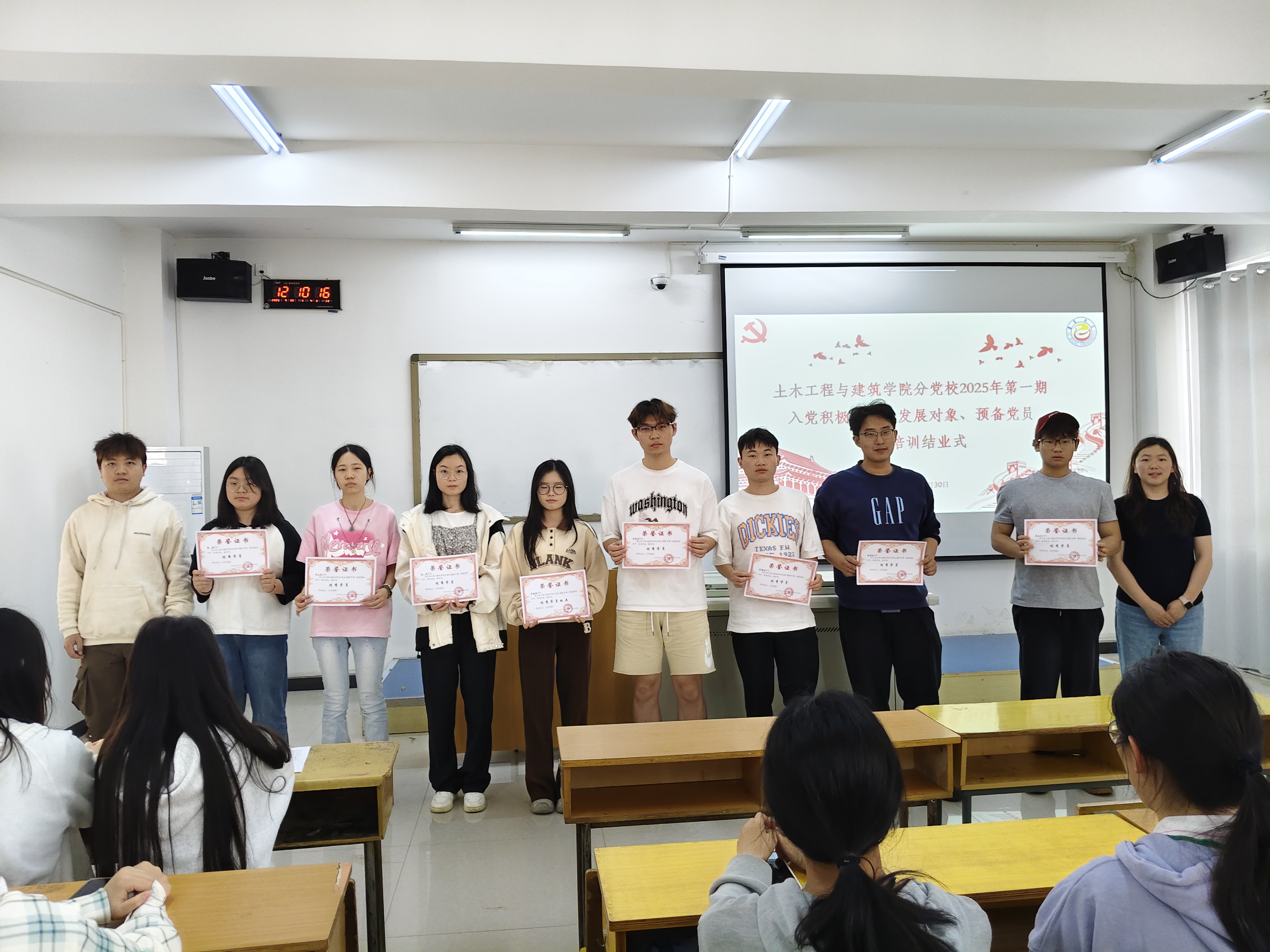 4月30日12:00,土木工程与建筑公司分党校2025年第一期党课培训结业式在第四教学楼北楼4401-1隆重举行。公司党建兼职专干、团委书记张晓阳,园林系支部书记周天柱出席此次活动,公司全体入党积极分子、发展对象、预备党员共计100余人参加结业仪式,会议由张晓阳书记主持。