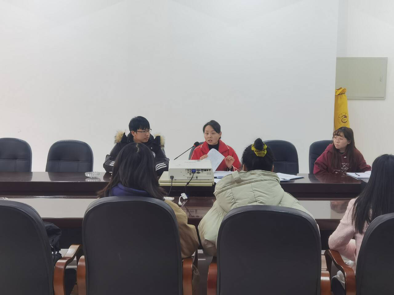 “极力去做!”张洁老师在会议初始之际对同学们进行了期望和动员,并鼓励大家要善于思考、敢于去做,不要被动的等待。接着开始为大家介绍共青团考核的细则,并为接下来工作的分配与安排做铺垫。会议井然有序地开展。