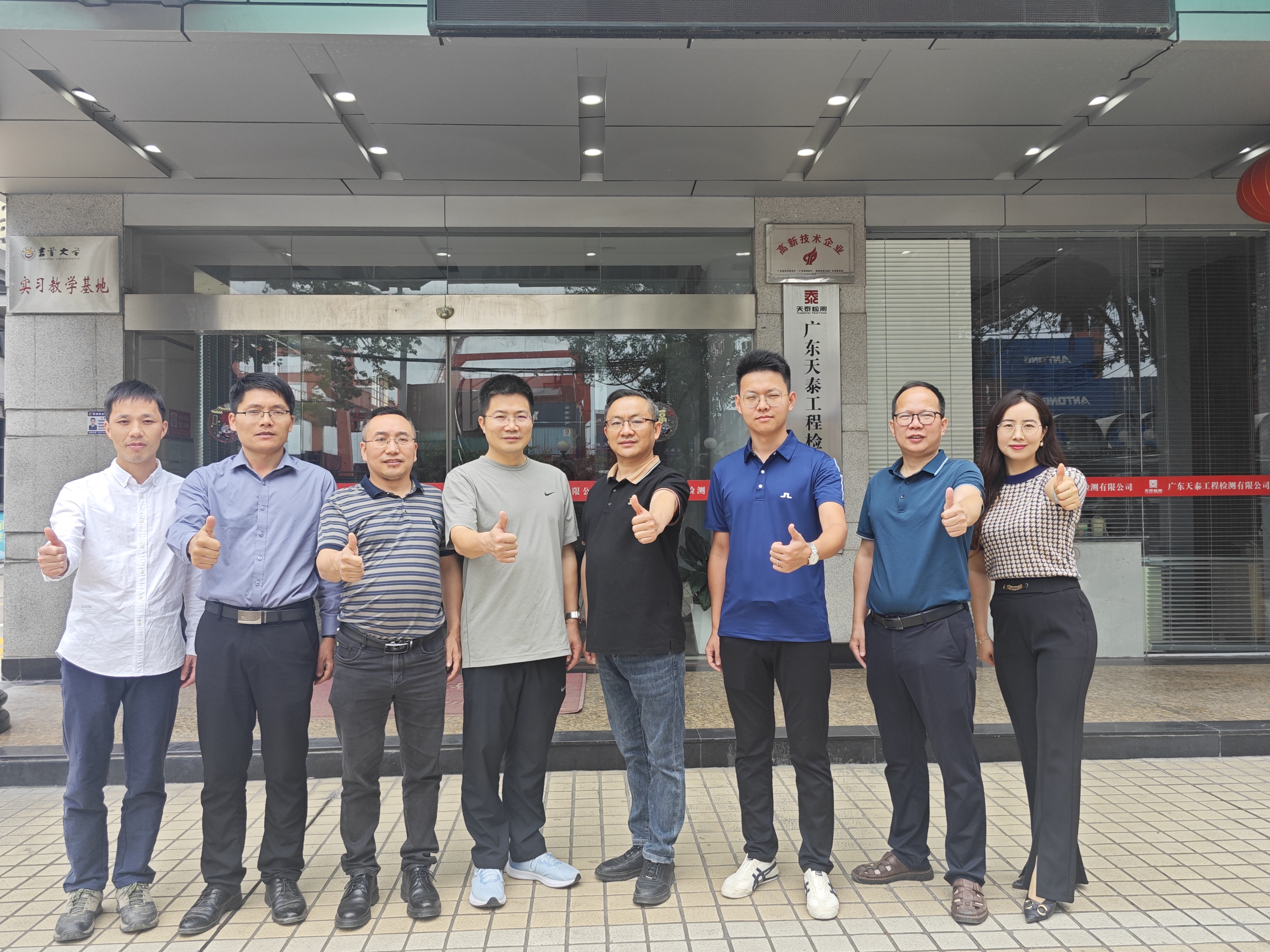 11月10日上午,天泰检测执行董事兼总经理吴月旺携常务副总经理邹飞虎、副总经理兼技术负责人倪树生、人事行政部部长李虹热情接待了公司一行并开展座谈,会后双方举行了校企合作基地签约仪式。